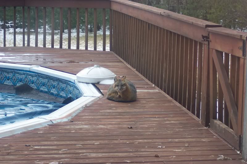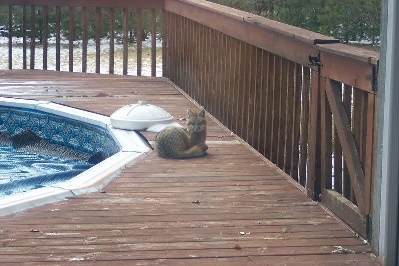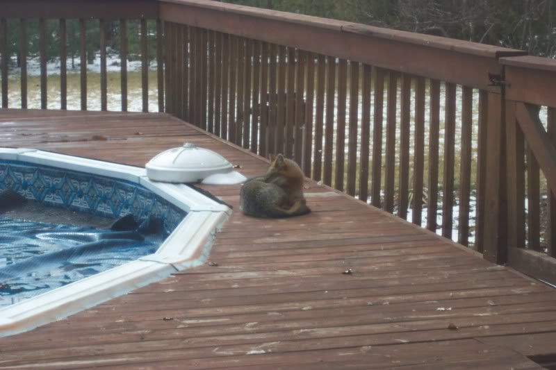 This fox obviously knew you were there, but didn't bolt, which I would think would be typical of a fox. Do you live way out in the boonies? The fox looks healthy, did it seem to act abnormal? Just thinking about the possibility of rabies.